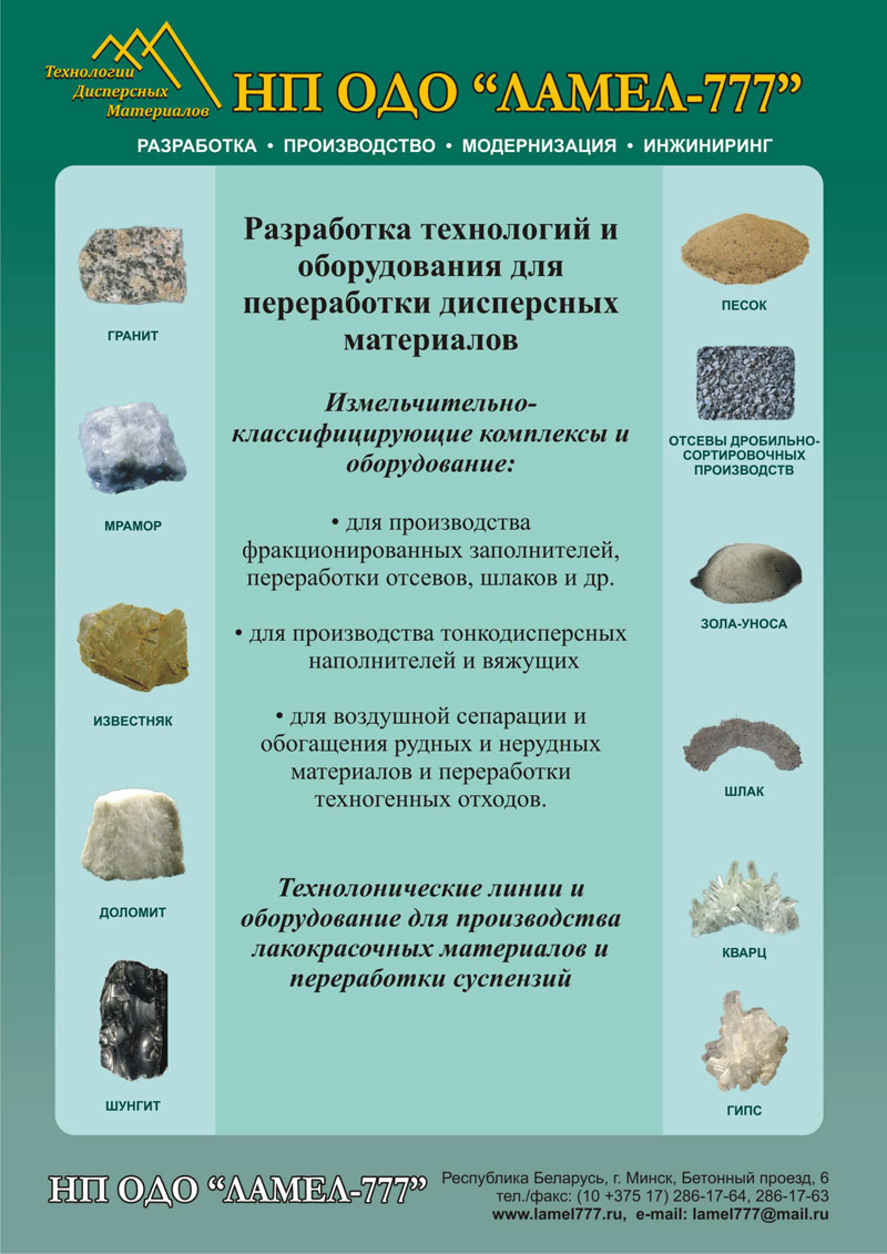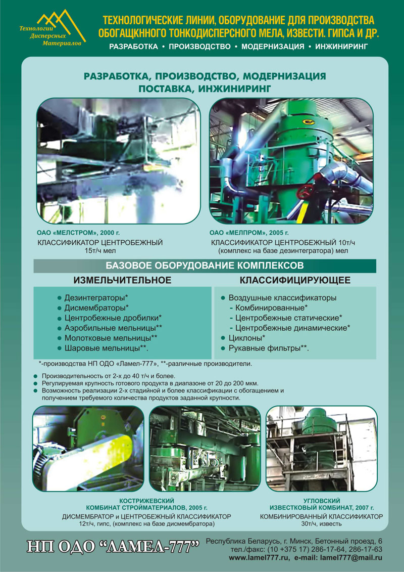 Новые возможности лабораторииВ рамках развития возможностей лаборатории приобретен и введен в эксплуатацию прибор лазерной гранулометрии Bettersize ST. | Завершены пусконаладочные работы для филиала АО «СУАЛ» «ВгАЗ-СУАЛ»В декабре 2016 года в филиале АО «СУАЛ» «ВгАЗ-СУАЛ» завершены пусконаладочные работы и комплексное опробование измельчительно-классифицирующей линии по производству алюминиевых пудр. | Контактные телефоны: Директор: Мельников Алексей Васильевич Тех. директор: Мельников Дмитрий Алексеевич E-mail: Lamel777@mail.ru |